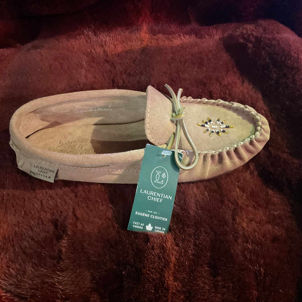 Discover the Laurentian Chief Moccasins, Single Lacing, Natural Ribbon Soul Beaded, carefully handcrafted to honor First Nations Traditions.
